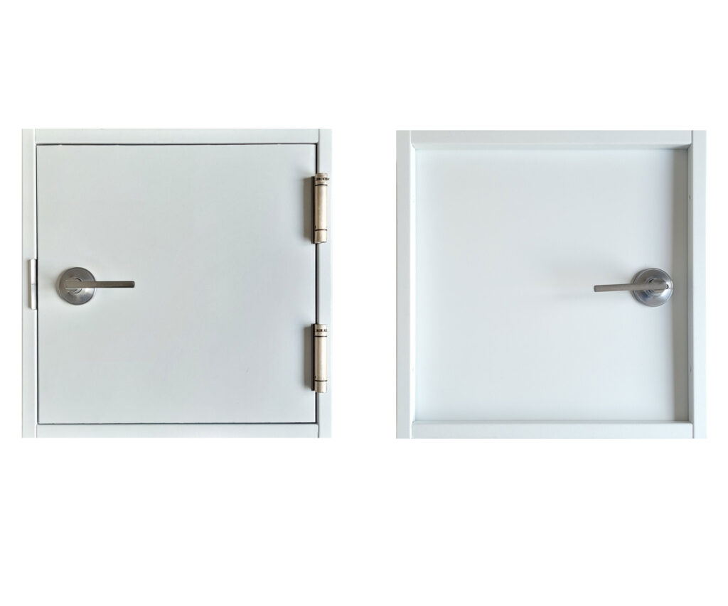 Puertas cortafuego para shut con resistencia al fuego de 60 y 180 minutos certificada UL, bajo la norma UL 10B – UL10C. Estas puertas son ideales para evitar la propagación del fuego en los ductos de basuras. comúnmente es utilizada en los shut de basuras del los edificios residenciales, nuestras puertas cumplen con la norma Colombiana NSR 10.